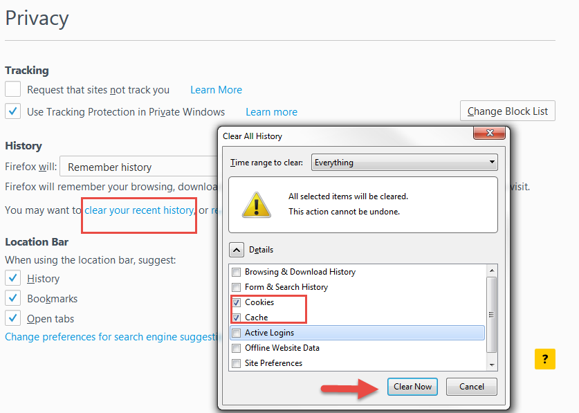 - In the box that appears, click the checkboxes for “Cookies” and “Cache”.