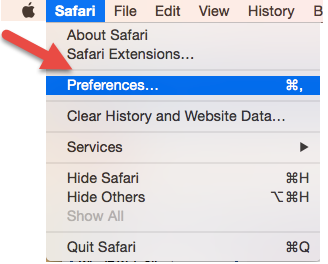 - Click Safari in the upper left hand side of your screen. In the menu that appears, click Preferences.